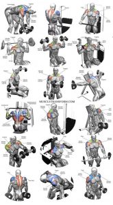 A continuación te mostramos los algunos ejercicios y músculos que trabajan con las mancuernas: