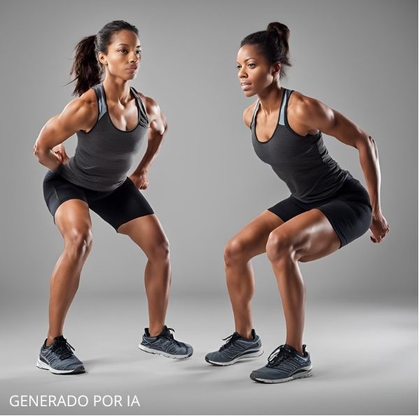 - Saltos en cuclillas: Trabaja tus piernas y glúteos mientras mantienes tu frecuencia cardíaca elevada.