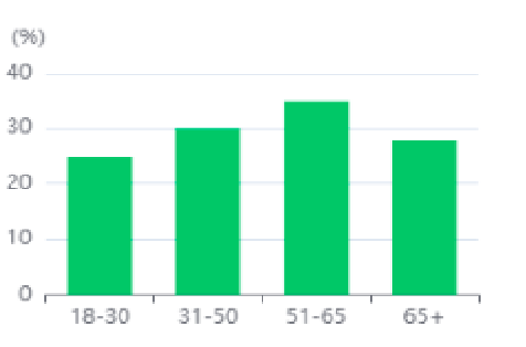 Este gráfico muestra cómo el consumo de fibra aumenta la sensación de saciedad en diferentes grupos de edad. Notablemente, el efecto es más pronunciado en el grupo de 51 a 65 años (35%), lo que sugiere que los beneficios se intensifican con la edad, una etapa donde el metabolismo tiende a disminuir.