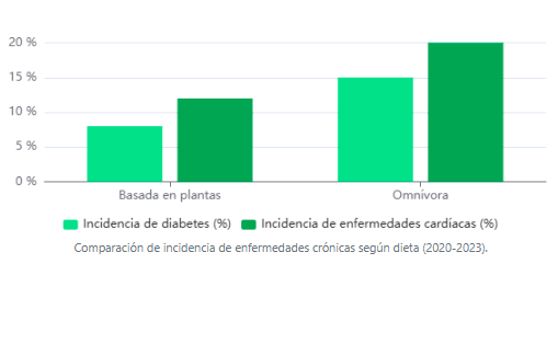 💡 Resumen: Una dieta vegetal no solo es efectiva para la pérdida de peso, sino que también reduce a casi la mitad el riesgo de diabetes y enfermedades cardíacas en comparación con dietas omnívoras.