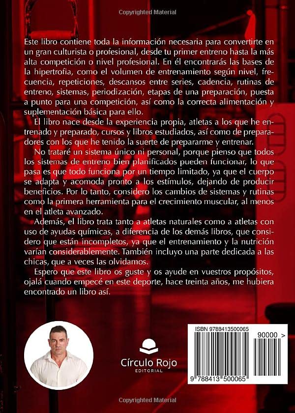 Este libro “Culturismo y fitness de alto rendimiento”, contiene toda la información necesaria para convertirte en un gran culturista o profesional, desde tu primer entreno hasta la más alta competición o nivel profesional. En el encontrarás las bases de la hipertrofia, como el volumen de entrenamiento según nivel, frecuencia, repeticiones, descansos entre series, cadencia, rutinas de entreno, sistemas, periodización, etapas de una preparación, puesta a punto para una competición, así como la correcta alimentación y suplementación básica para ello.