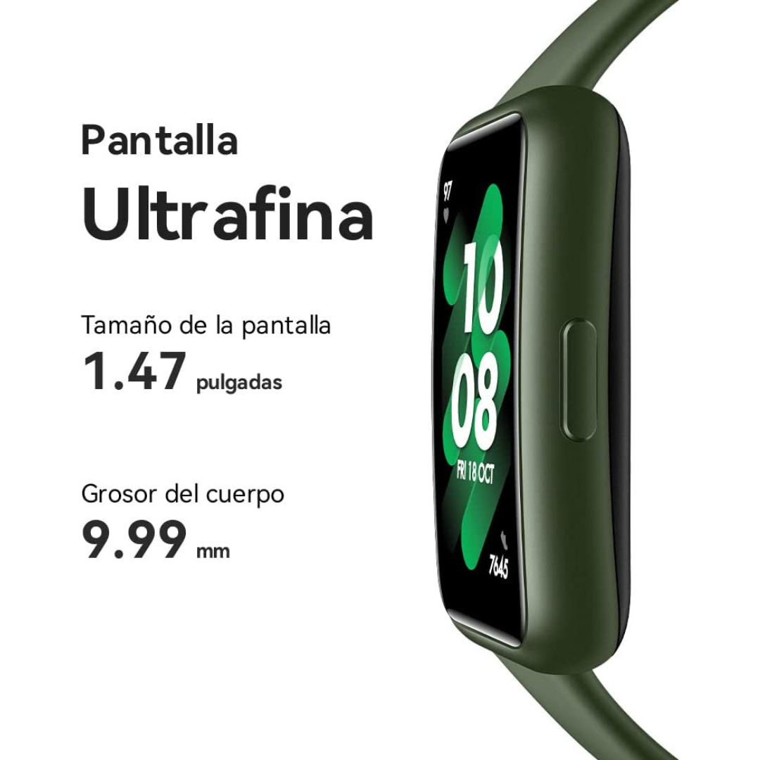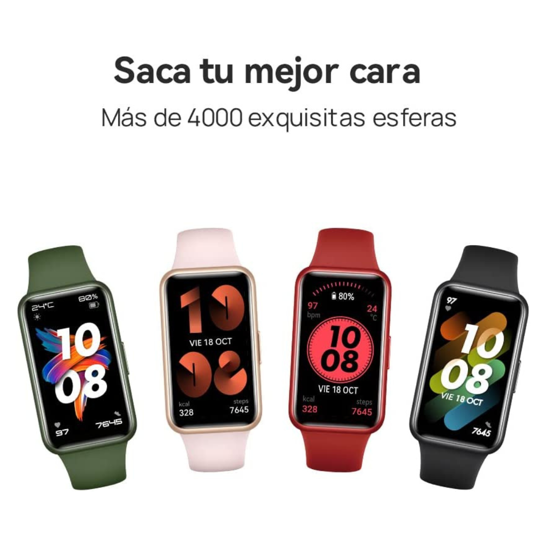 El Monitor de Salud y Fitness HUAWEI Band 7 es super ligero con un peso de 16g con un tamaño de pantalla de 1,47″ que se envuelve alrededor de la muñeca con facilidad. Sus marcos ultrafinos enmarcan el contenido en pantalla y resaltan tus funciones y servicios favoritos. La impresionante pantalla AMOLED de la smartband parece que está flotando en el aire.