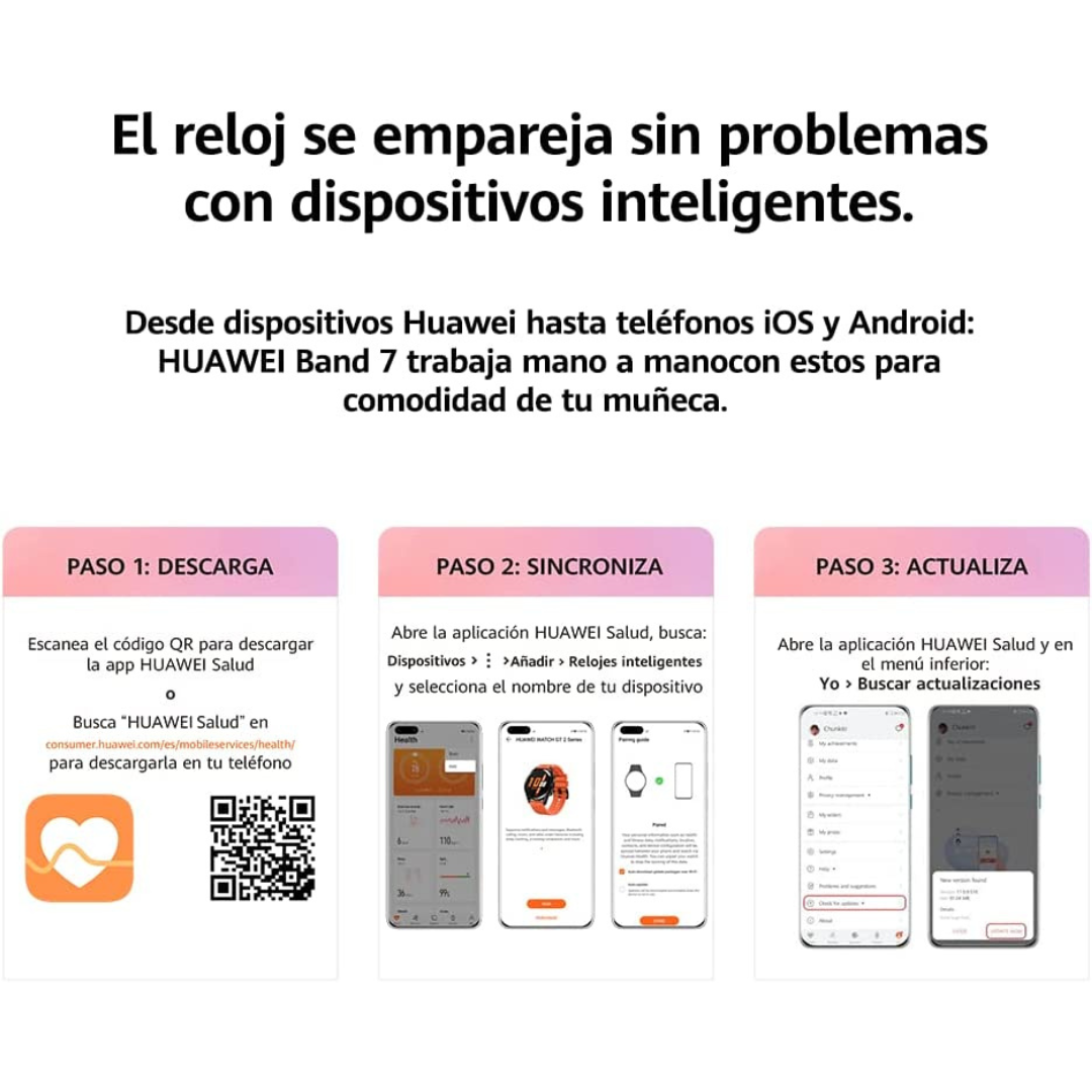 - 【Tu asistente inteligente para todo】: La smartband HUAWEI Band 7 te mantiene conectado a tu vida al proporcionarte acceso directo a las funciones más básicas del teléfono, como llamadas y mensajes entrantes, responder a los mensajes rápidamente, pronósticos del tiempo y controles de música. Puedes incluso usarla para sacar una foto con el teléfono, todo cómodamente desde tu muñeca.