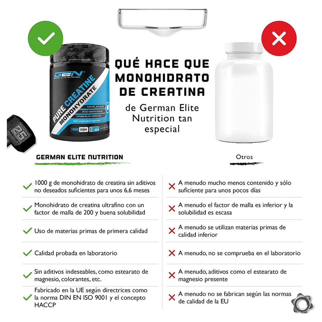 Monohidrato de creatina puro – Solubilidad óptima – Vegano – Sin aditivos – Polvo puro – German Elite Nutrition