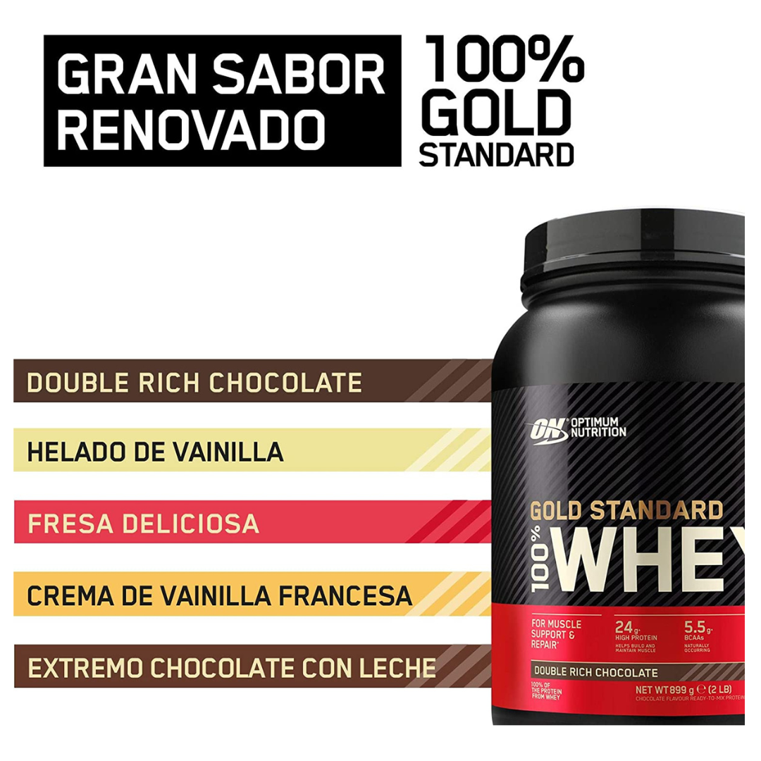 Transformarse forma parte de nuestra misión, que consiste en acercar los productos de OPTIMUM NUTRITION a personas activas para que comprendan cómo las pueden ayudar a lograr sus objetivos físicos. Los sabores de la Proteína en Polvo Gold Standard Whey han sido mejorados en sus 5 variedades más vendidas: Double Rich Chocolate, Extremo Chocolate con Leche, Helado de Vainilla, Crema de Vainilla Francesa y Fresa Deliciosa.