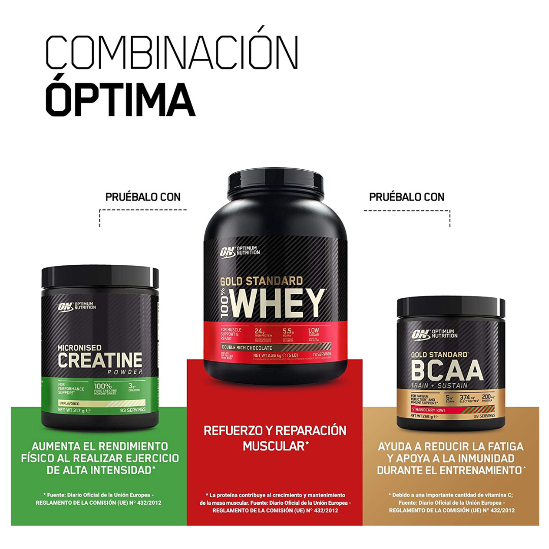Gold Standard Whey de Optimum Nutrition lleva siendo la primera opción mundial en de proteína en polvo de suero de leche* más de 20 años. Con una mejora constante de su fórmula, la versión actual de ON Gold Standard Whey es la más eficiente y ofrece la absorción más rápida hasta la fecha, gracias a que emplea la proteína de suero aislada como ingrediente clave, de modo que ayuda a conservar el músculo y a su recuperación**.