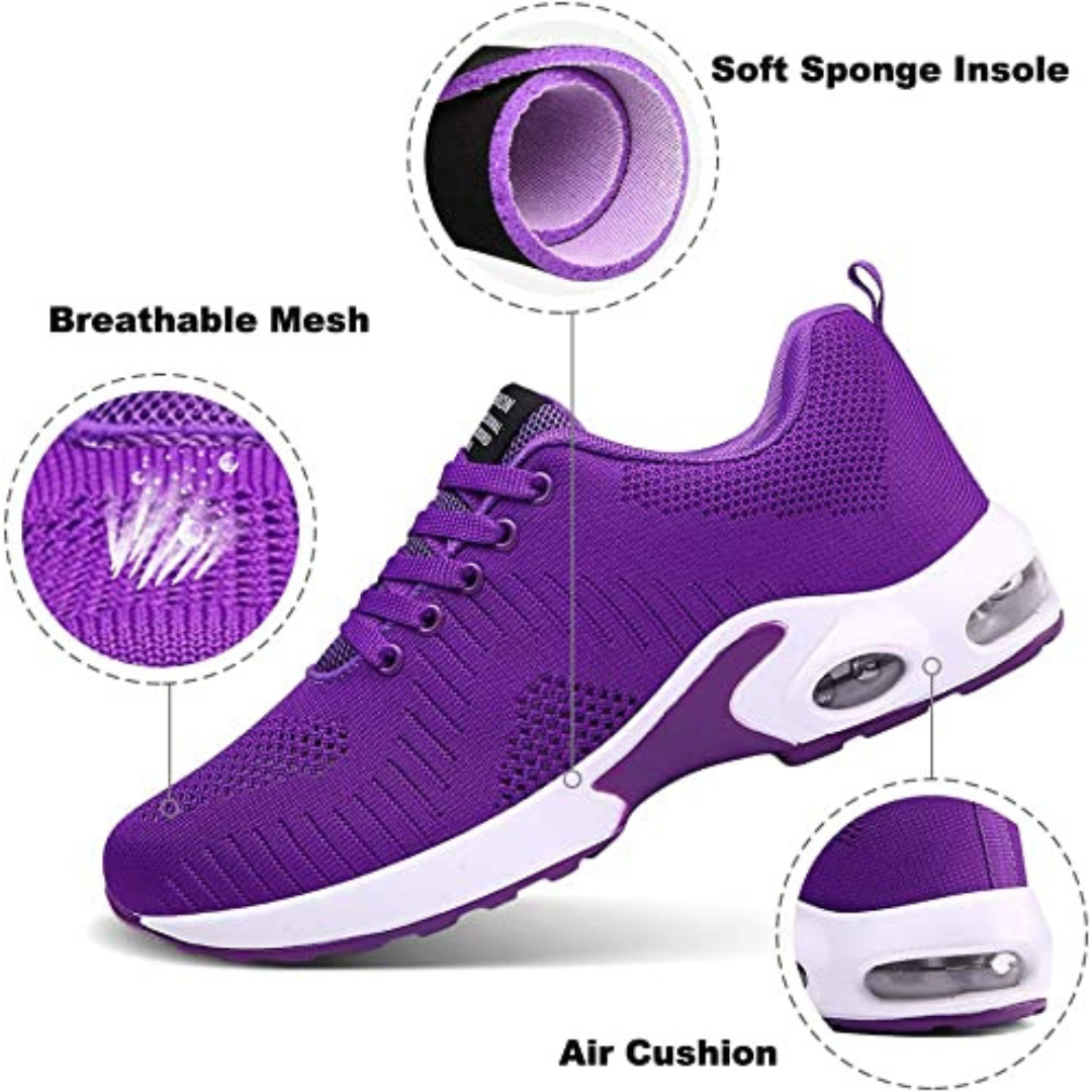 - Material exterior: Las Zapatillas de Running Fitness de mujer usan una parte superior de malla transpirable de alta calidad que es totalmente transpirable y mantiene los pies secos y frescos todo el día.