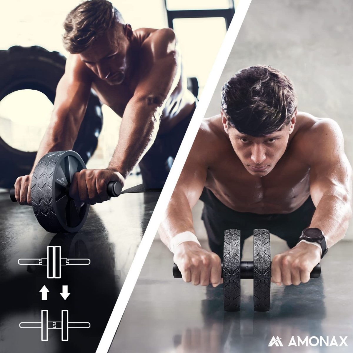 Amonax Abs Wheel en su configuración de doble rueda proporciona suficiente estabilidad para que los principiantes acumulen la fuerza inicial que se necesita para progresar, mientras que la configuración de una sola rueda menos estable es un equipo de ejercicio de roller abdominales más robusto. La rodillo abdominales fitness Amonax es un excelente equipo de ejercicios para el hogar para hombres y mujeres.