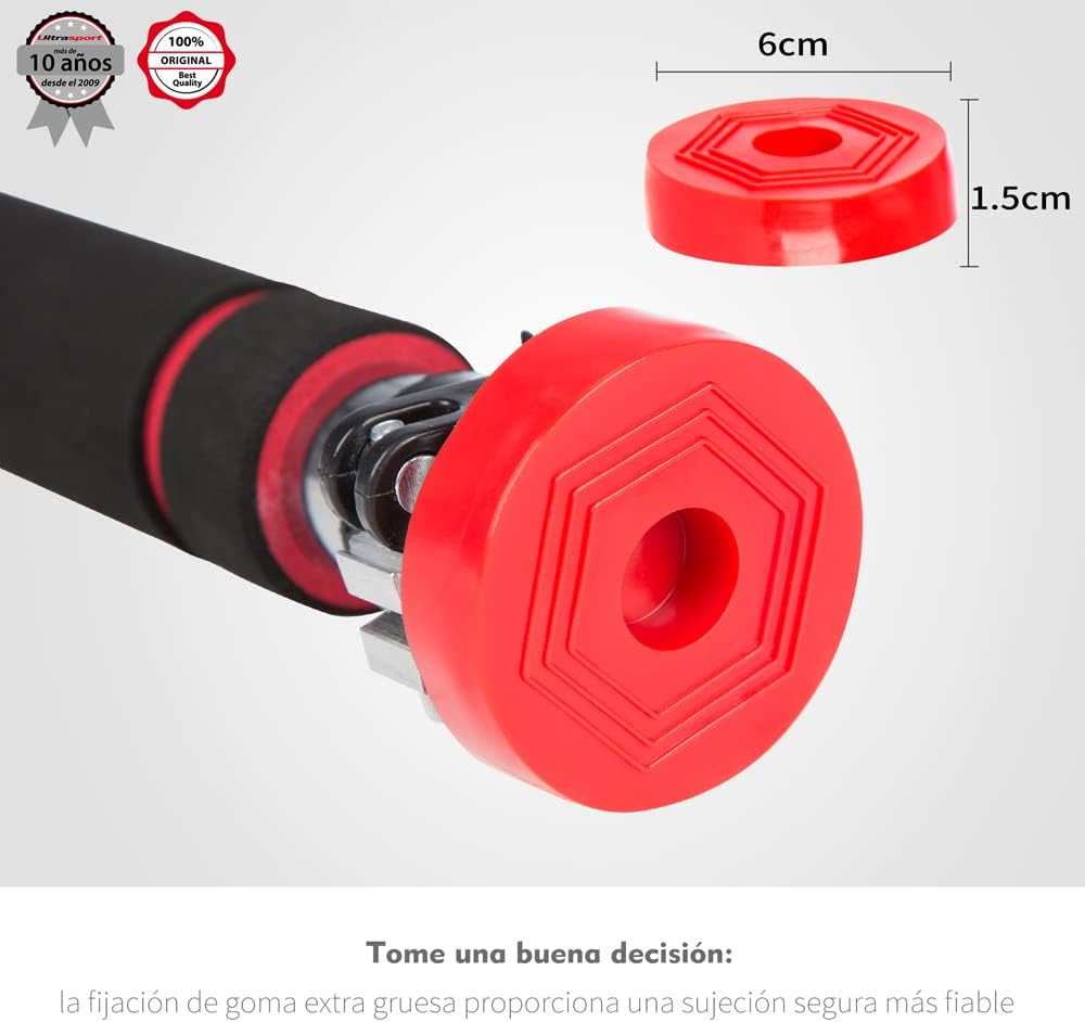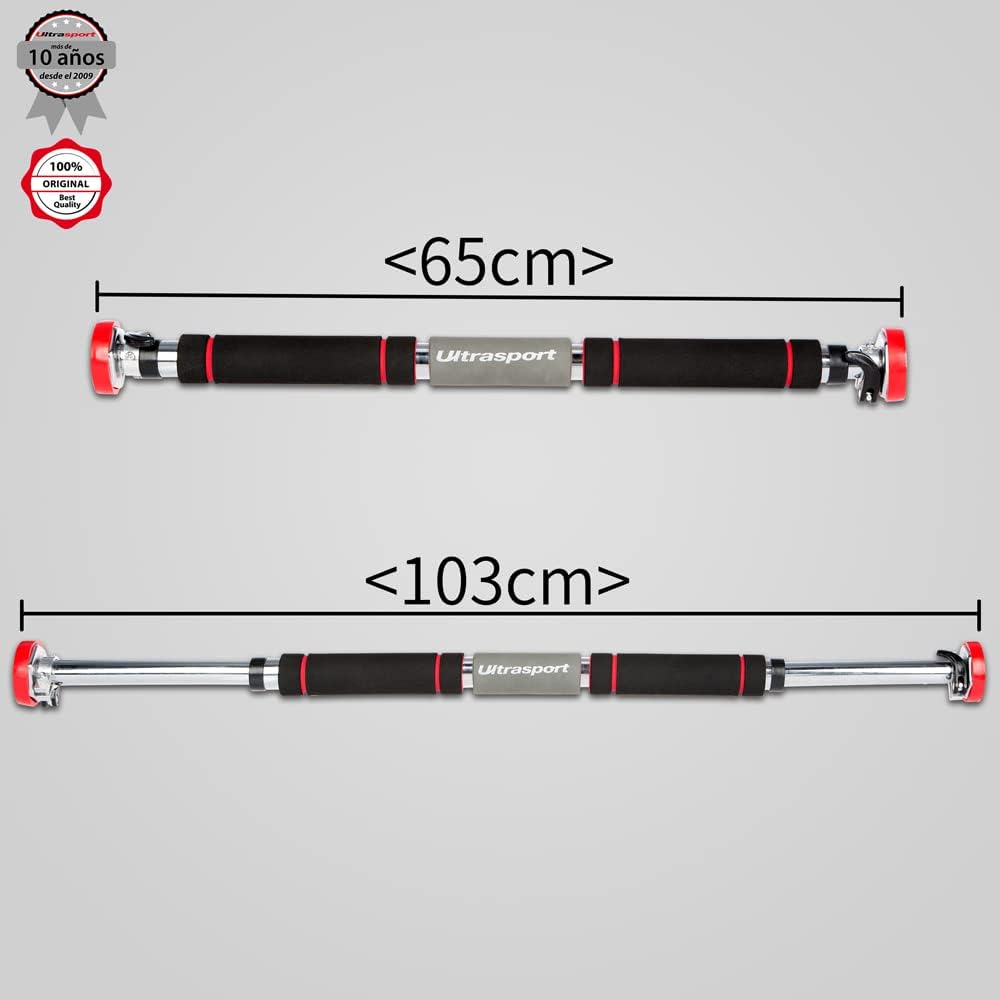 Barra Dominadas Ultrasport, barra de puerta, ajustable de 66,5 cm a 93 cm, montable sin tornillos, antideslizante, sujeción segura, mangos de espuma