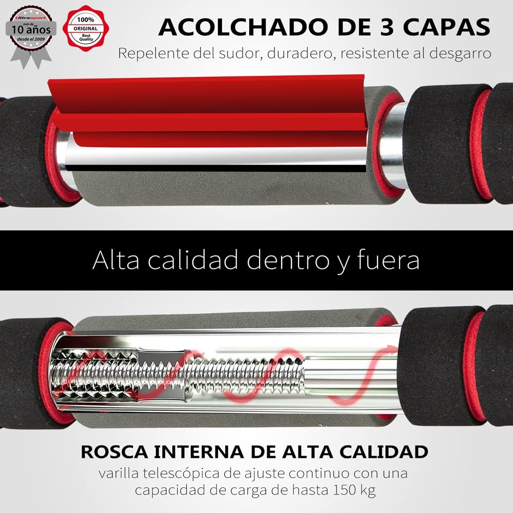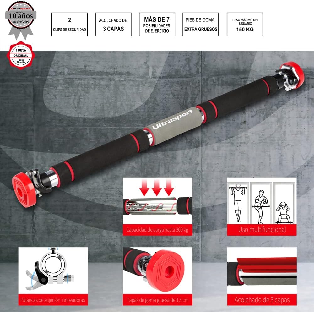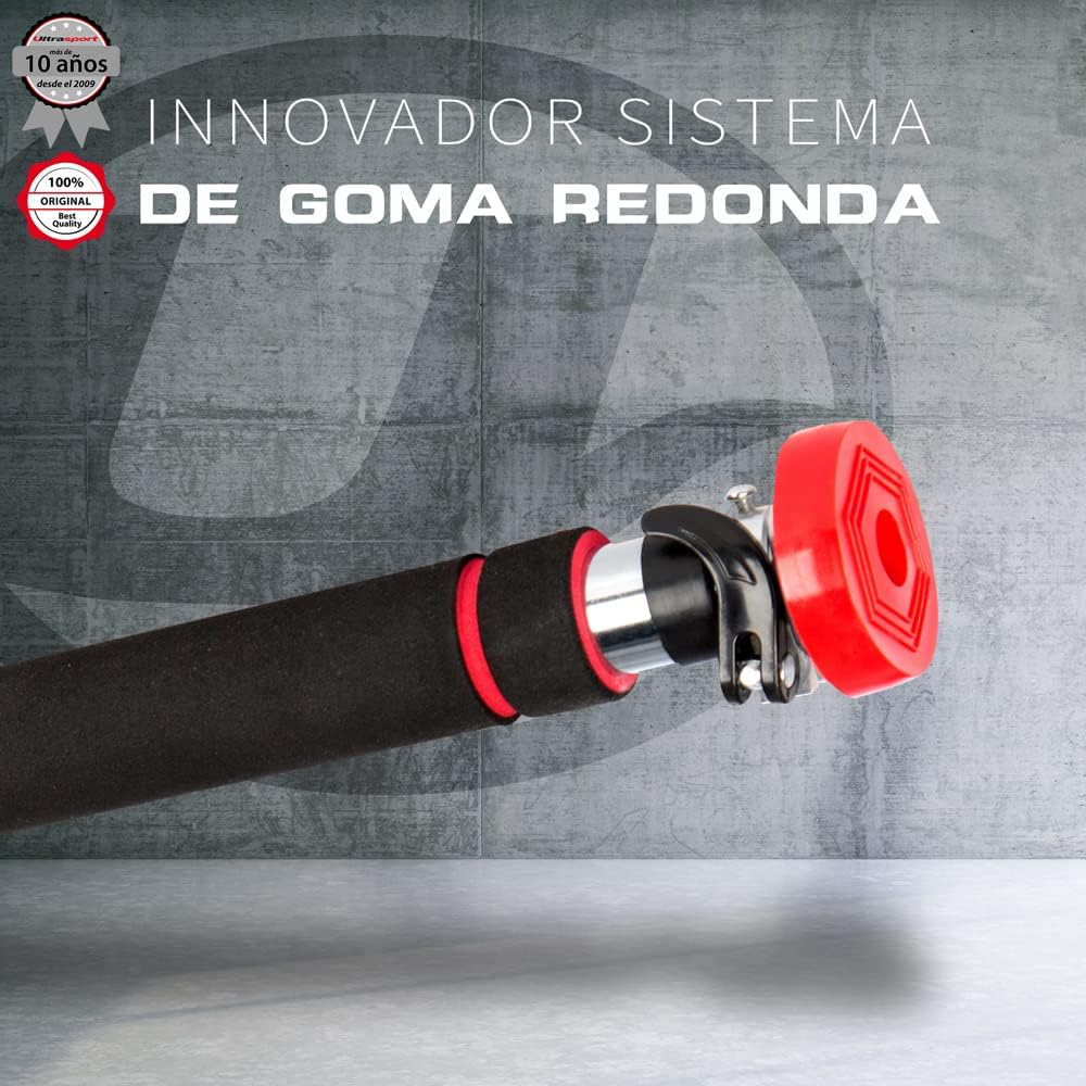 Barra Dominadas Ultrasport, barra de puerta, ajustable de 66,5 cm a 93 cm, montable sin tornillos, antideslizante, sujeción segura, mangos de espuma