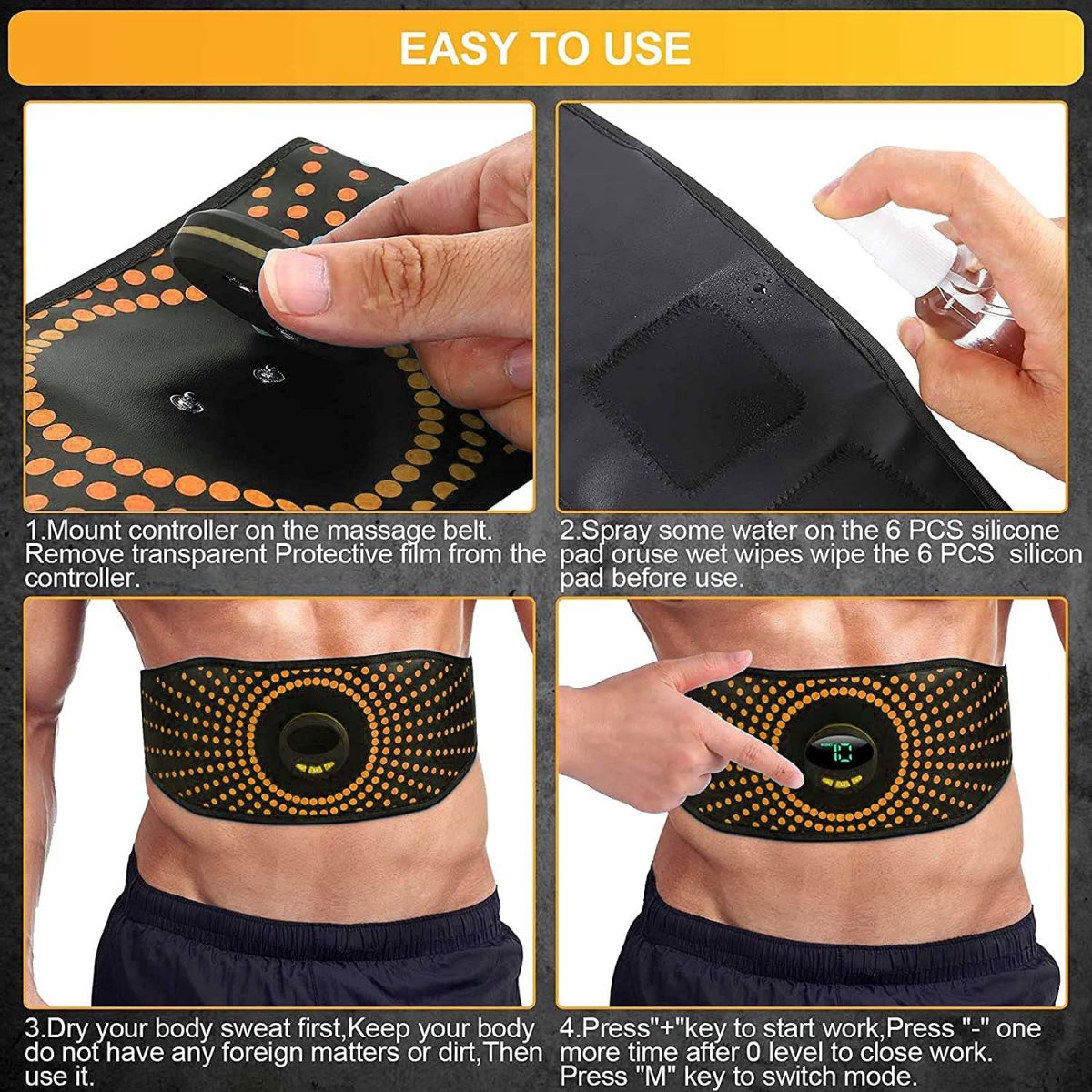• 💪FÁCIL DE USAR ➤ ¡Nuestros Cinturón Muscular Abdominal EMS están construidos pensando en la ultra-conveniencia! Gracias a un cinturón ajustable y flexible para la cintura, nuestros estimuladores de abdominales son de talla única, lo que hace que el sexy y los físicos atléticos estén al alcance de todos.