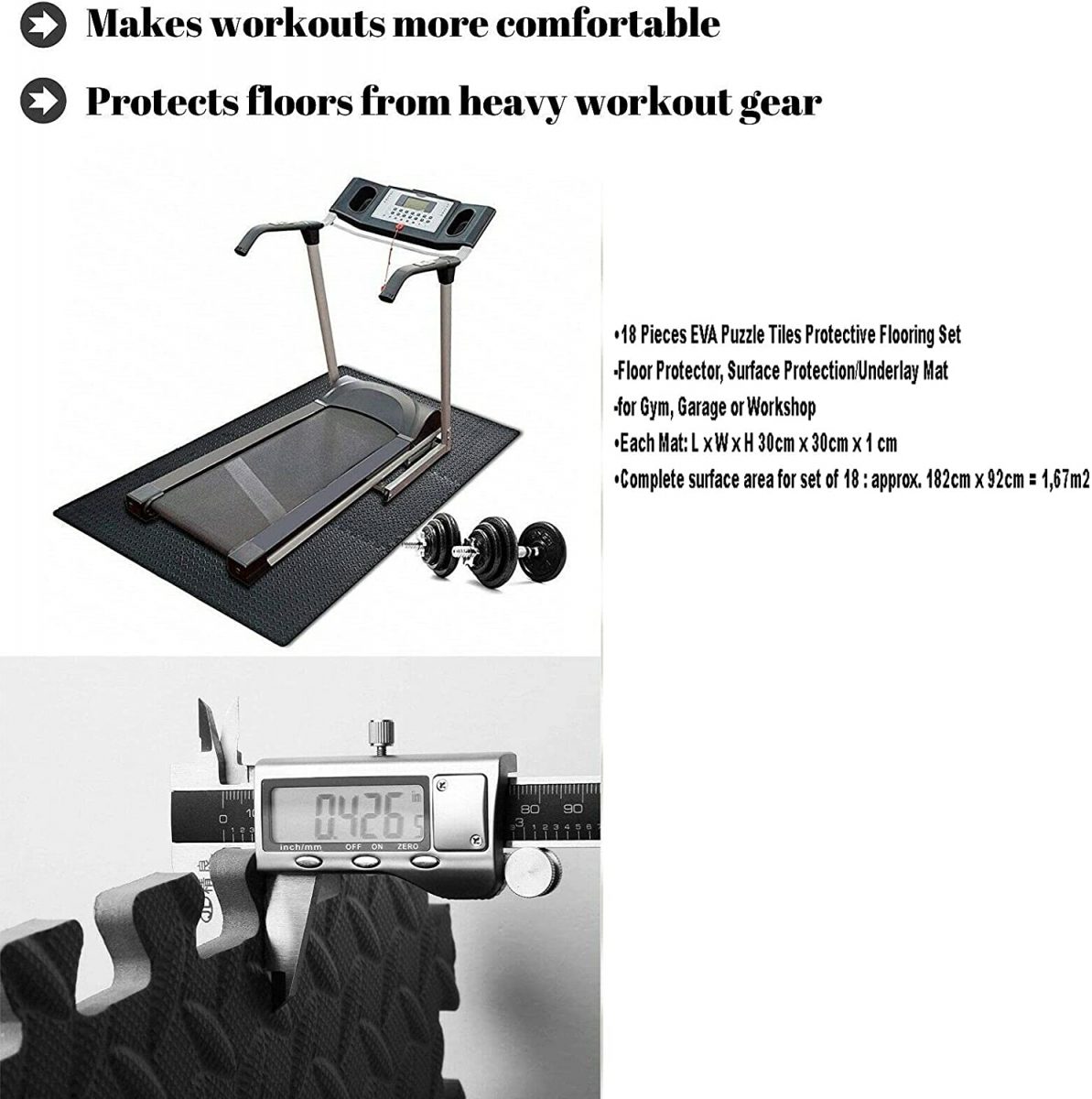 - DE ALTA CALIDAD, SEGURO Y DURADERO – La goma EVA de alta concentración, respetuosa con el medio ambiente y con superficie antideslizante es ideal para proteger el suelo de salas con máquinas de fitness y equipo deportivo, salas de juegos, talleres, garajes, sótanos, trasteros, etc. El material es ligero, aísla el sonido y el calor, protege contra golpes, es impermeable y se puede limpiar fácilmente con agua y jabón