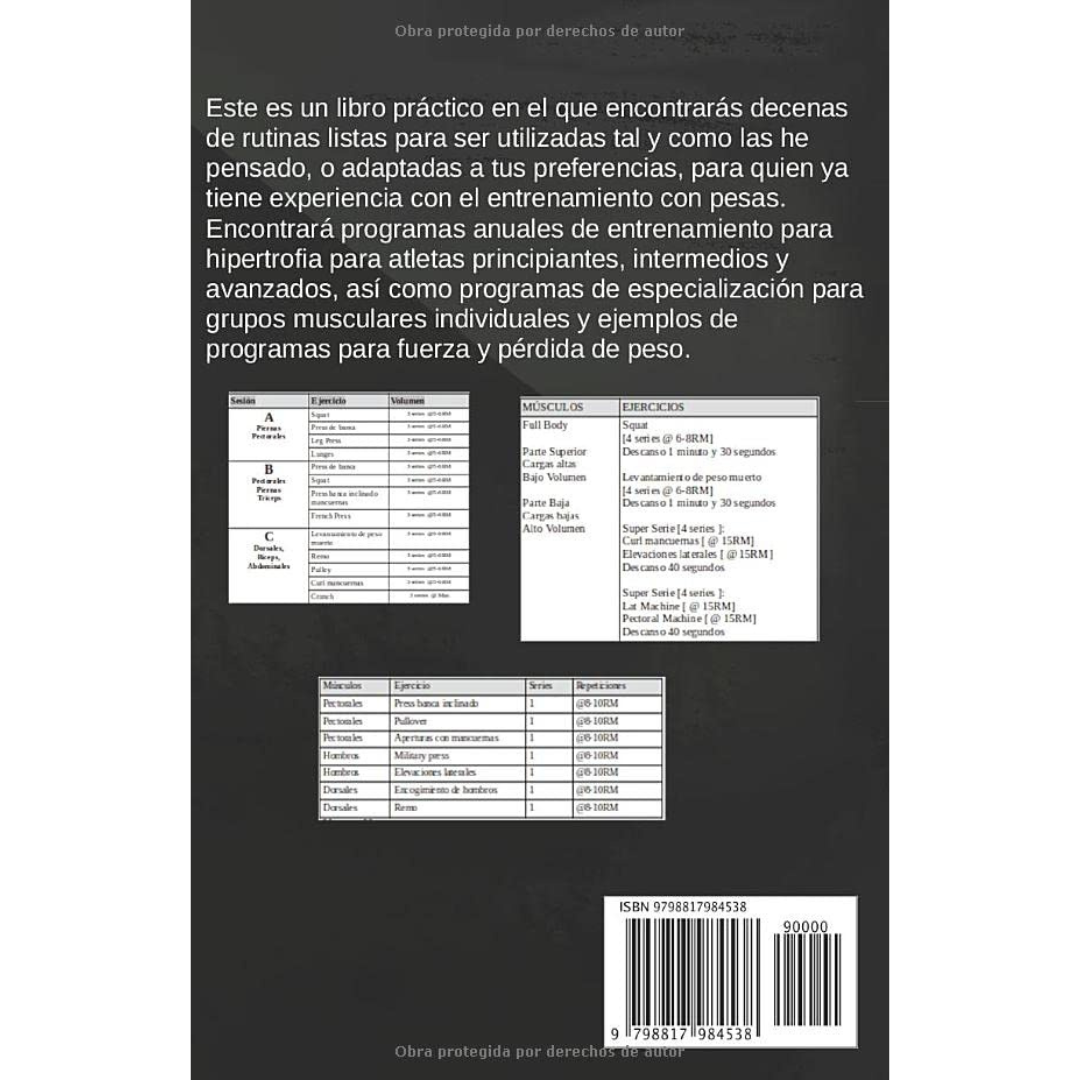 Este es un libro práctico “Rutinas Culturismo y Fitness” en el que encontrarás decenas de rutinas de entrenamiento listas para ser utilizadas tal y como las he pensado, o adaptadas a tus preferencias, si ya tienes experiencia con el entrenamiento con sobrecargas.
