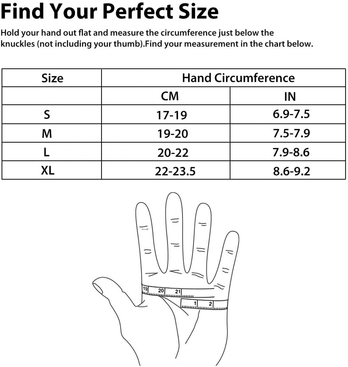 - ENCUENTRE SU TAMAÑO: Mida la circunferencia de su mano plana, y elija entre: Pequeño (se adapta a 17-19cm), Mediano (se adapta a 19-20cm), Grande (se adapta a 20-22cm), Extra Grande (se adapta a 22-23.5cm). Si el tamaño de su mano está en la mitad, le recomendamos que seleccione el tamaño más grande.