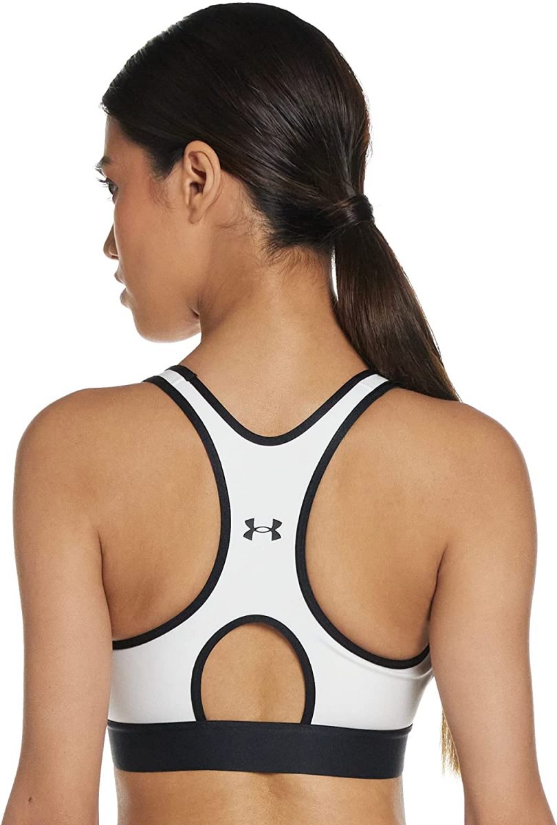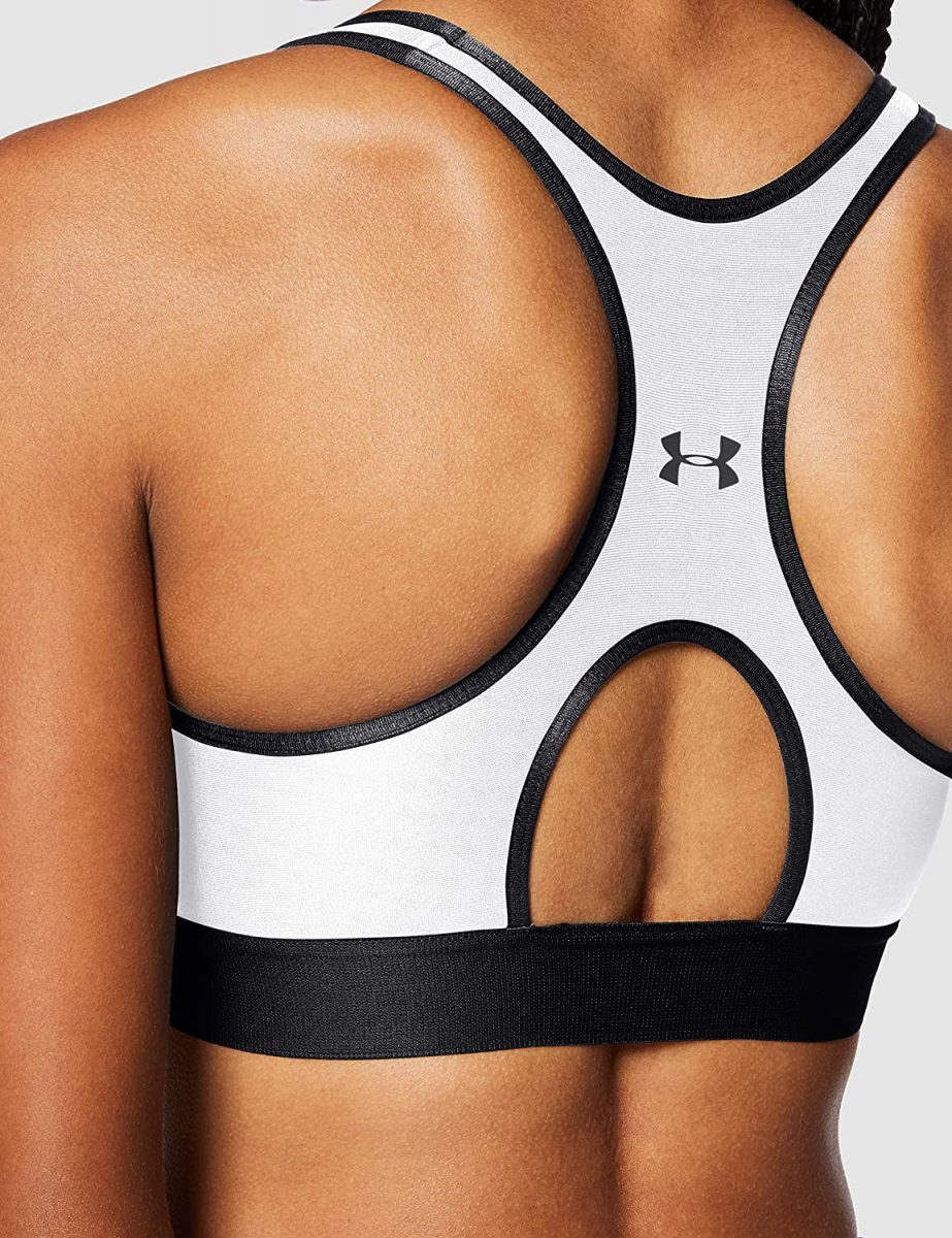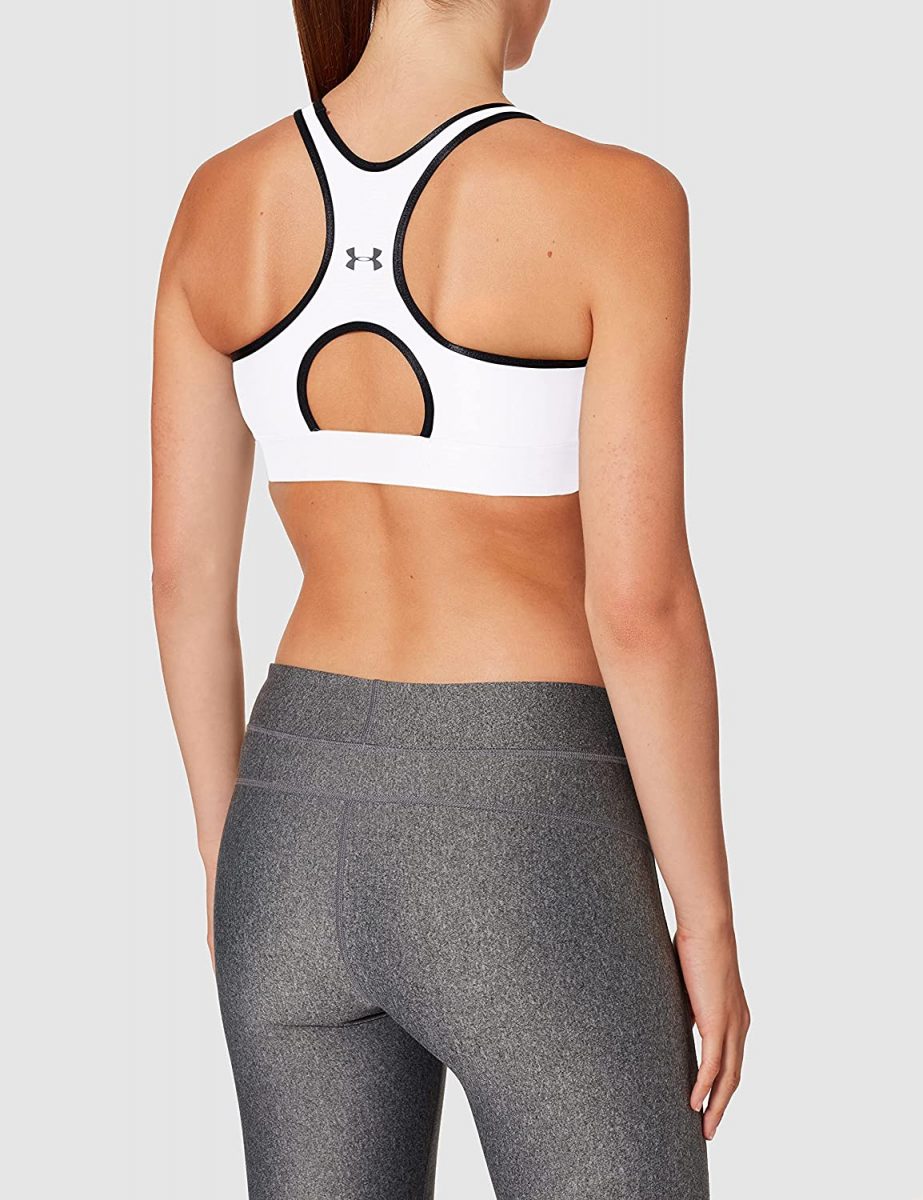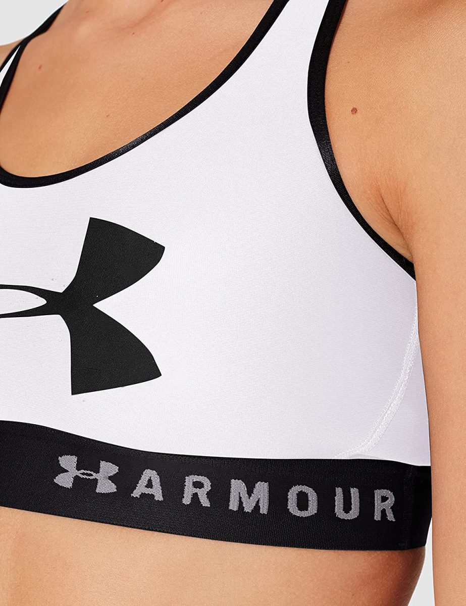 Sujetador deportivo para mujer con espalda cruzada Under Armour, lo mejor para tazas A a C. Los brasieres deportivos de compresión UA ofrecen apoyo estratégico, adaptados para actividades de impacto medio como ciclismo, entrenamiento con pesas y boxeo. Estilo clásico de suéter con diseño de espalda cruzada para un mayor rango de movimiento y diseño de ojo de cerradura añadido para mayor ventilación. La banda elástica jacquard súper suave ofrece un ajuste personalizado y permanente. El tejido HeatGear® ofrece una sensación superior al contacto con la piel.